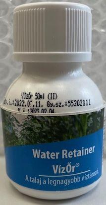 Vízőr (Water Retainer). Organikus talajkondícionáló. Általában három hónapig fejti ki a hatását. Ezidő alatt a talaj vízmegtartó képessége lényegesen megnő, a talajban stabilabb nedvesség szintet tudunk fenntartani. Csapadékhiányos időben a növények, akár kétszer annyi időt is képesek átvészelni súlyosabb károsodás nélkül. Csökkenthetjük a vízfelhasználást. Díszkertekben is felhasználható. Házikerti alkalmazás: 10 ml-es kiszerelés (ampulla) 5 nm területre elegendő. (1-1,5 liter vízhez). Ha a levélre kerül, bő vízzel mossuk le. Gyep: a házikerti alkalmazásban leírtak kétszerese is alkalmazható.