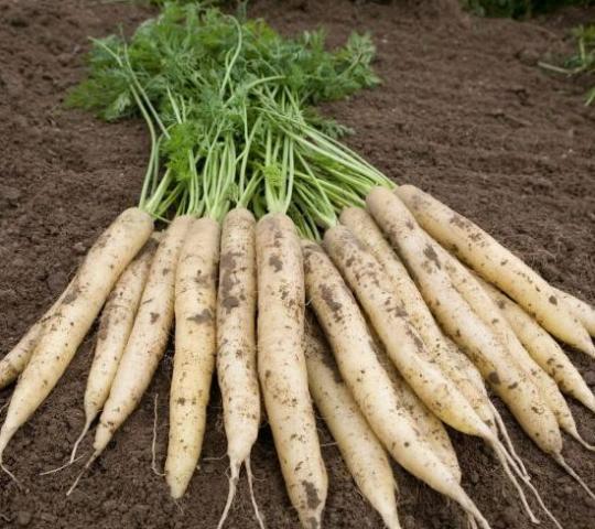 Sárgarépa vetőmag. 95 napos, hibrid különlegesség, Fehér színű, korai, 80 napos tenyészidejű Nanti típus. Gyökere hosszú, sima és karcsú. Koraisága miatt csomózásra is alkalmas.