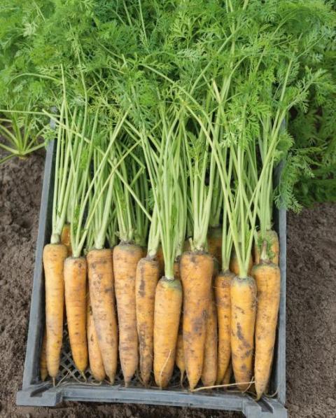 Sárgarépa vetőmag. 115 napos, hibrid. Citromsárga színű Nanti/Berlikum típusú, erős lombot fejlesztő különlegesség. Csomózásra és ipari feldolgozásra alkalmas. Rezisztencia: IR= Ad, Ar, Cc.