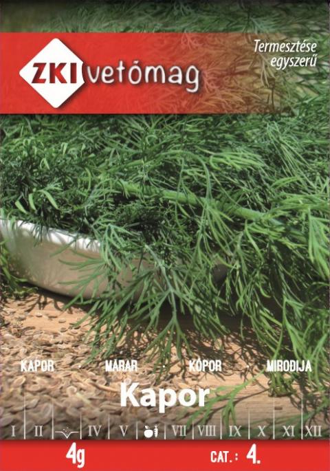 Kapor vetőmag. Magas növésű kapor fajta, magas hozammal. Levele sötétzöld, fűszeres illatú és ízű. Robusztus szárú, tökéletes fajta, különösen kötegelésre.Szárításra és fagyasztásra is alkalmas. Késői vetéssel nevelve is nagyon jó egészségi állapotával tűnik ki. Vegetációs időszak a vetéstől számított kb. 75 nap.