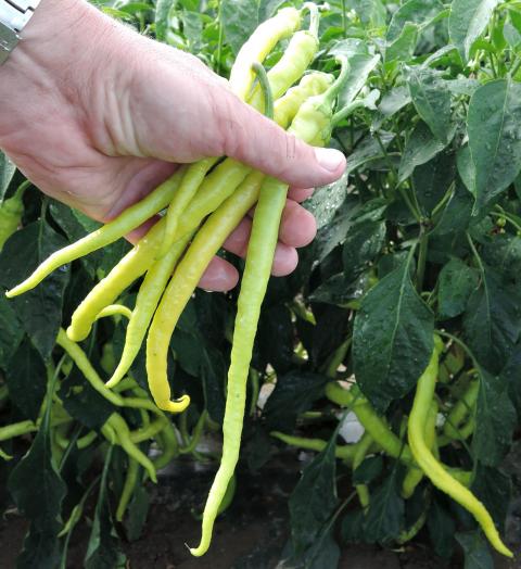 Paprika vetőmag. Paprika, hegyes-édes. Folytonnövő édes ízű paprika hibrid. Színe tetszetős világoszöld, sárgás bogyója hosszú, hegyes, csüngő és csavarodó. A termések válla kifejezetten keskeny. Az édes bogyók átlagtömege 20-30g. Növekedési erélye, lombozata kiválóan alkalmassá teszi szabadföldi termelésre is. Friss fogyasztásra és ecetes paprikának is alkalmas. Feldolgozás után is kiválóan megőrzi hús konzisztenciáját